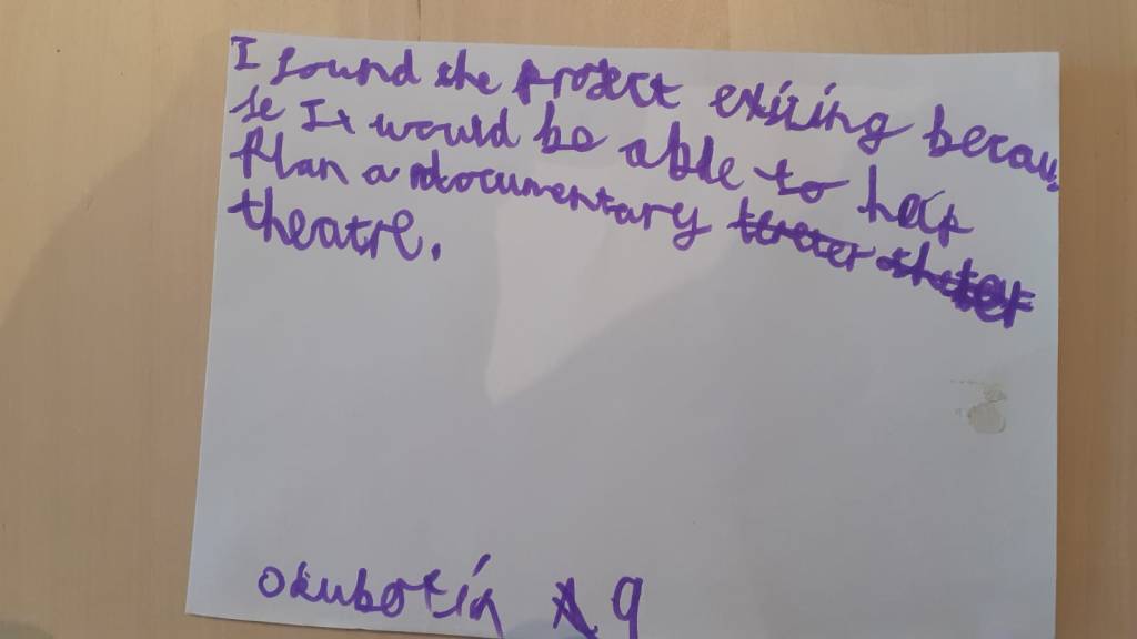 “I found the project exciting because I would be able to help plan a documentary theatre” Okubotin,9.