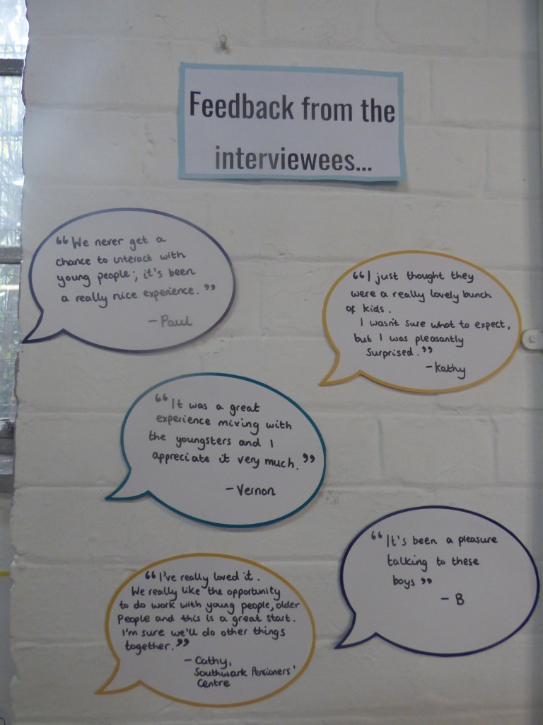 - “I’ve really loved it. We really liked the opportunity to do work with young people, older people and this this is a great start. I’m sure we’ll do other things together” – Cathy, Southwark Pensioners’ Centre