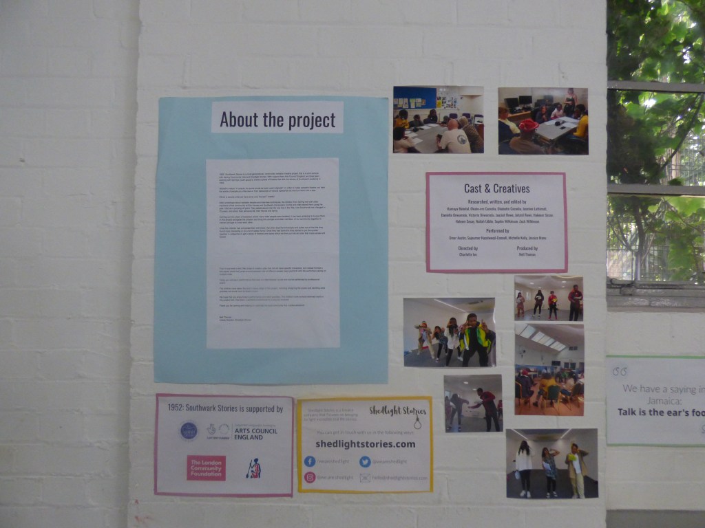 Please find below a series of photographs and videos documenting the process and product of our Creative Jubilee project, 1952: Southwark Stories.